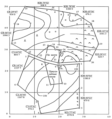 основе плана землепользования масштаба 1:10000, геодезических данных по