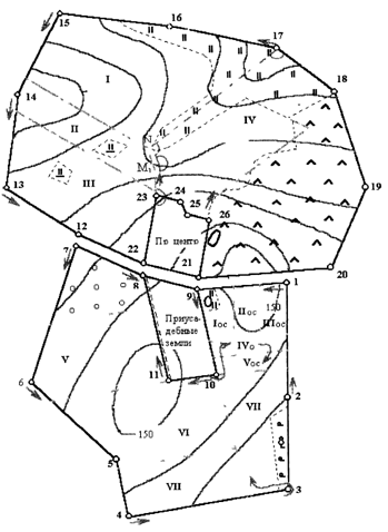 Пользуясь абрисами теодолитной съемки