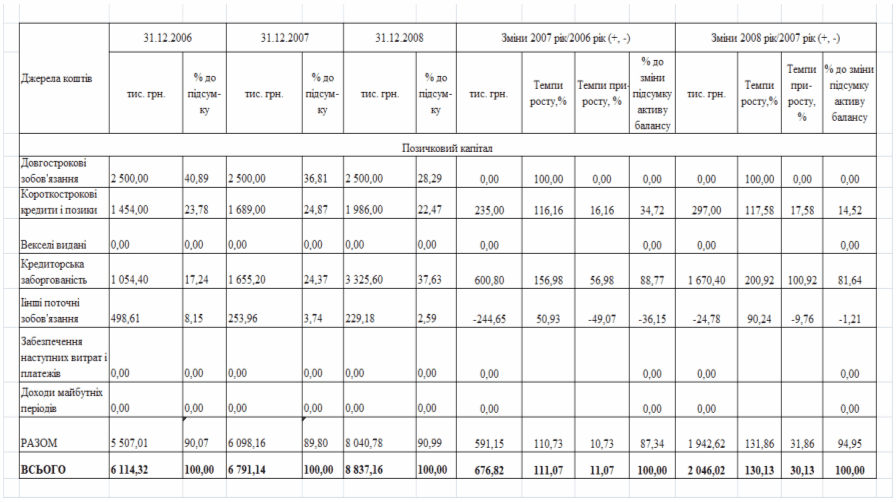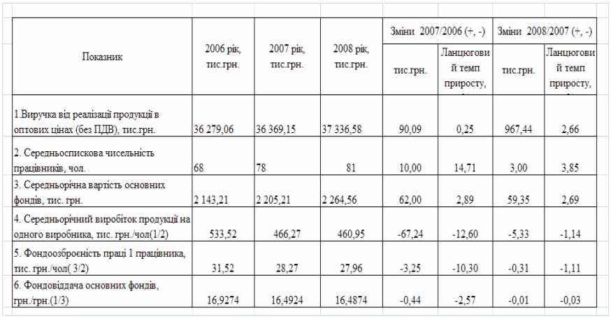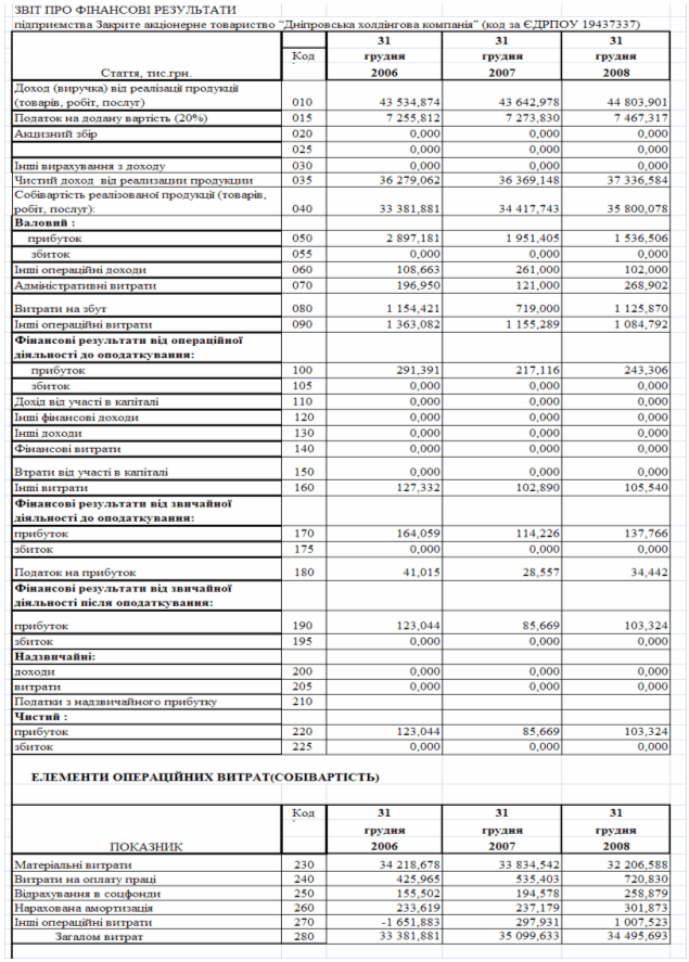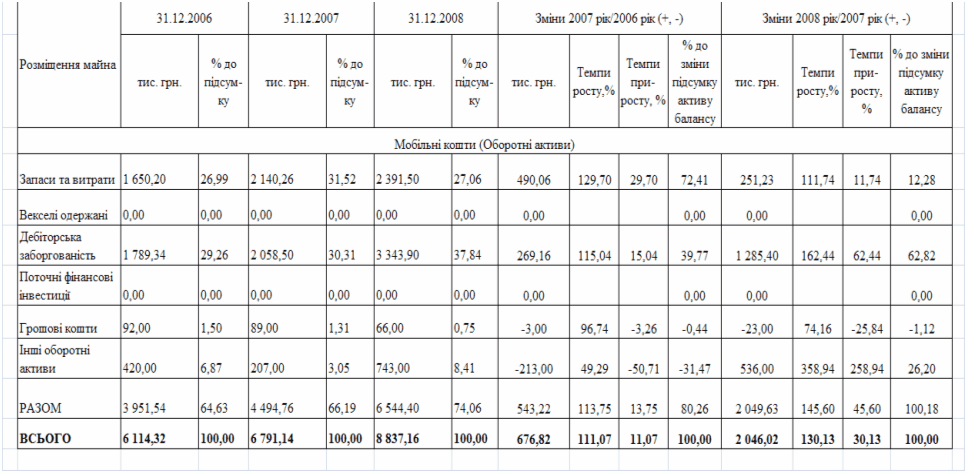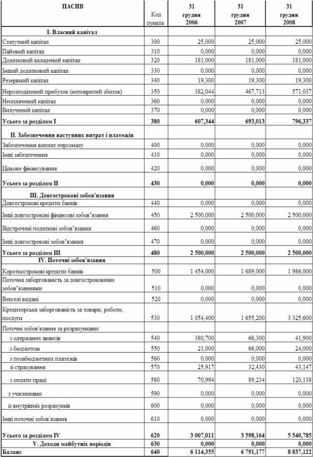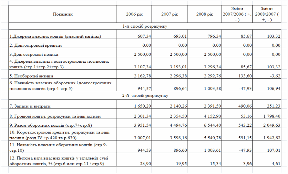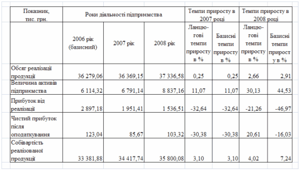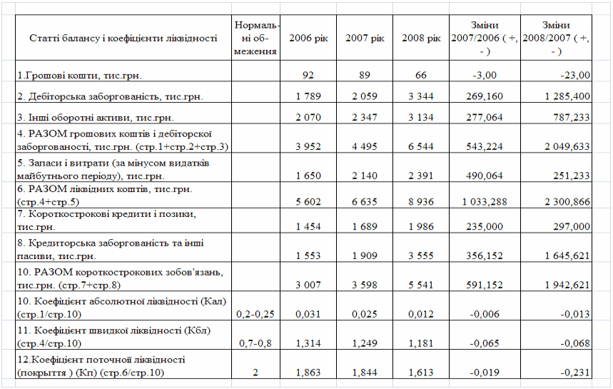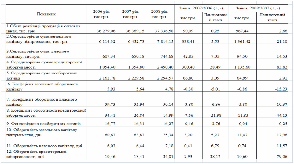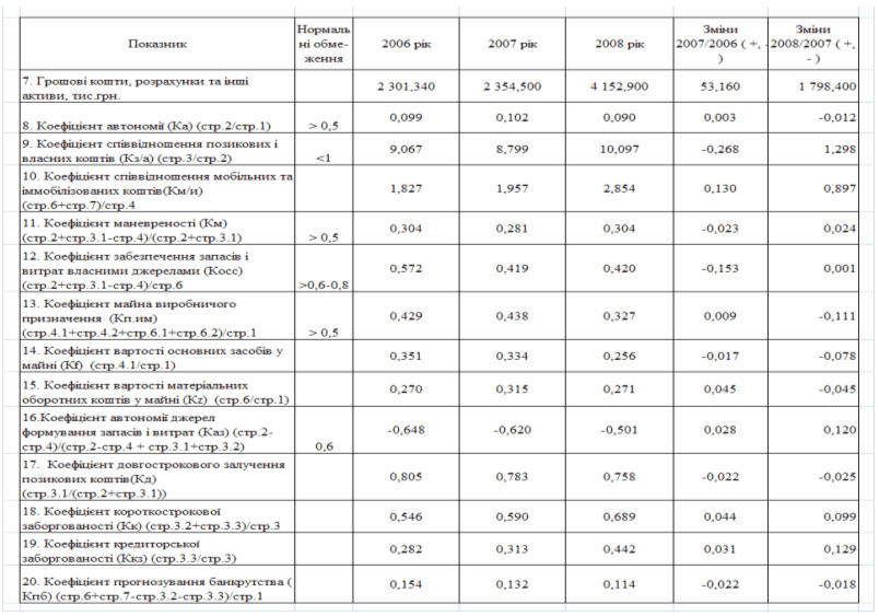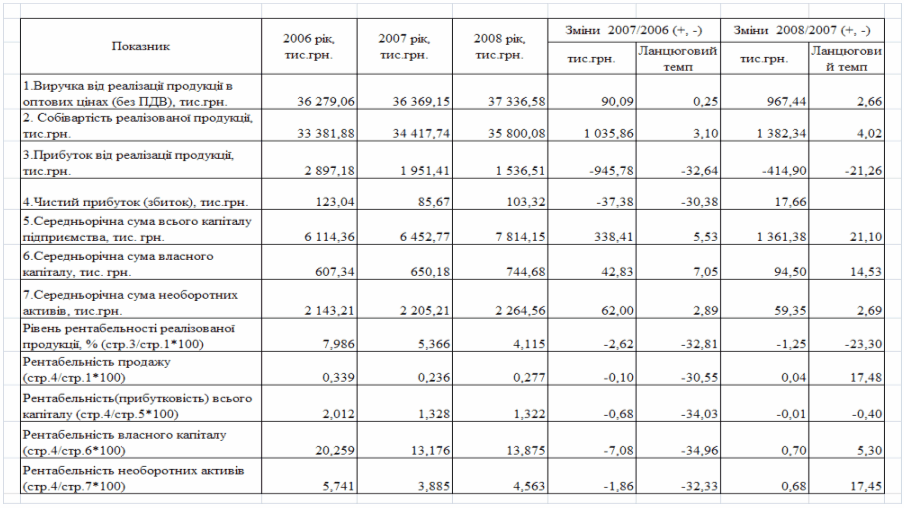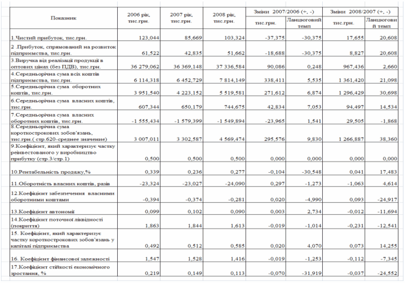 фінансового стану підприємства за результатами діяльності в 2006 -2008 роках
