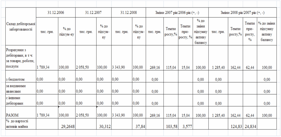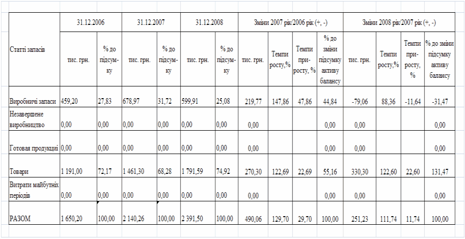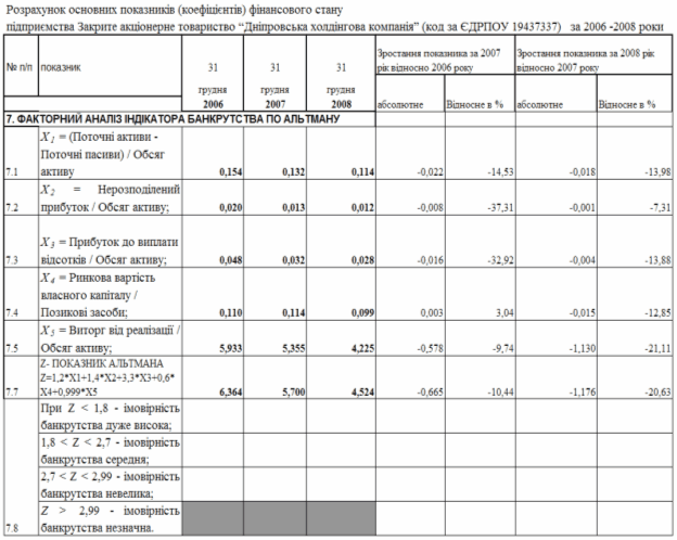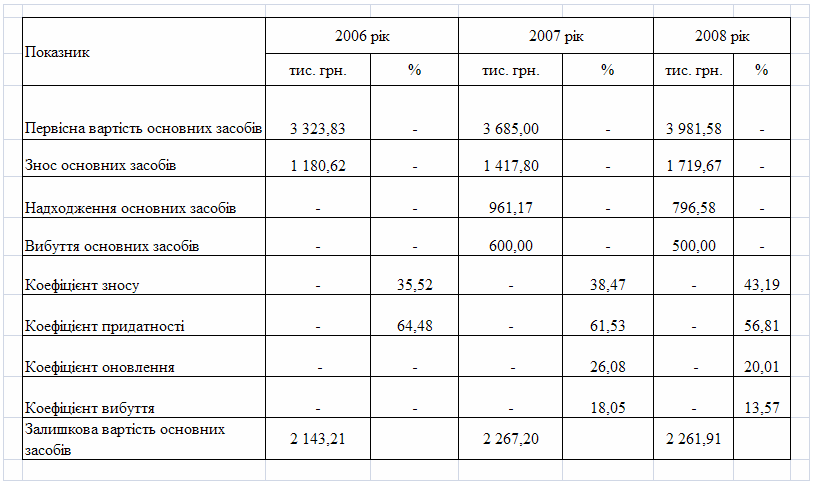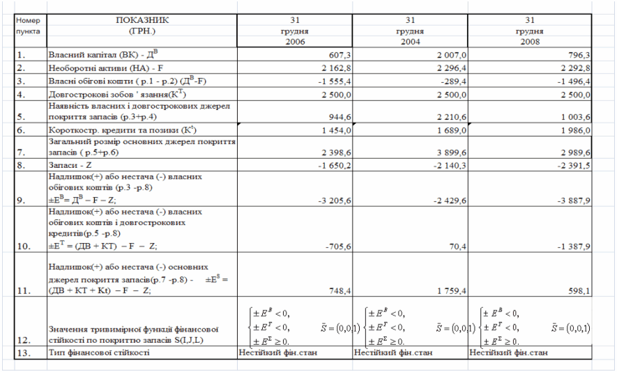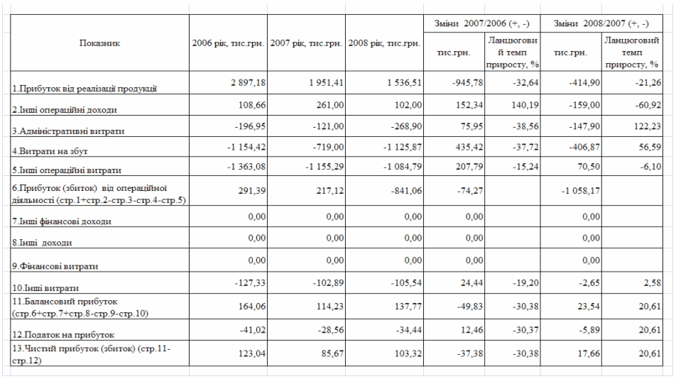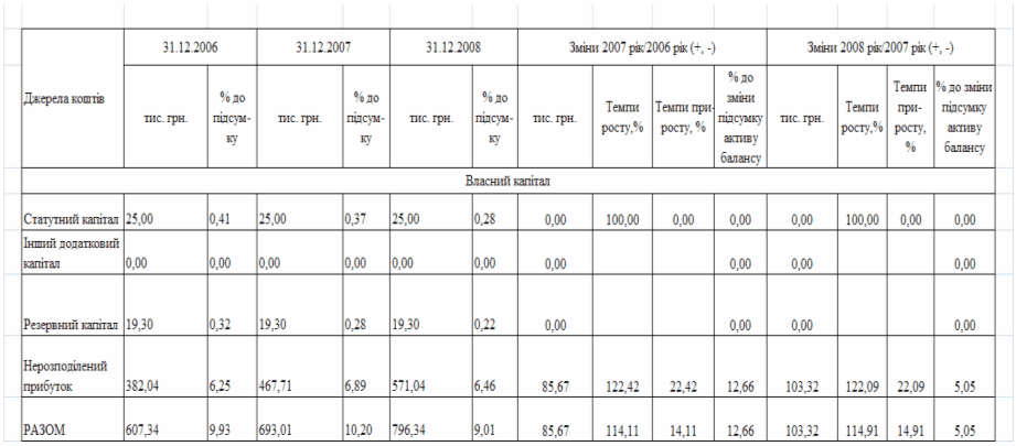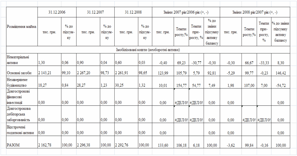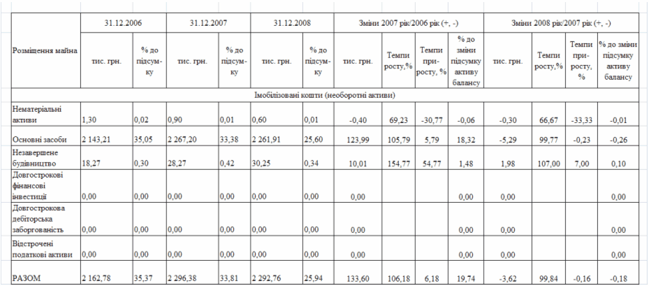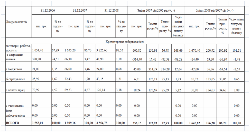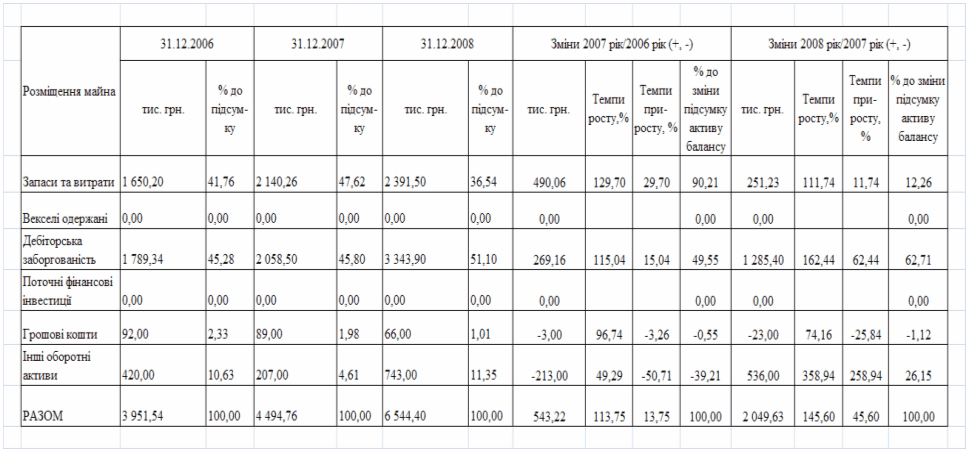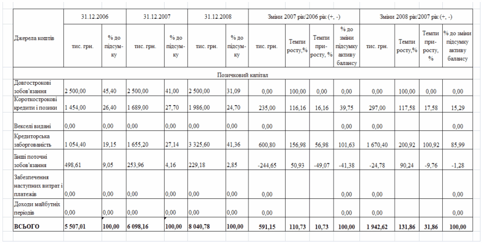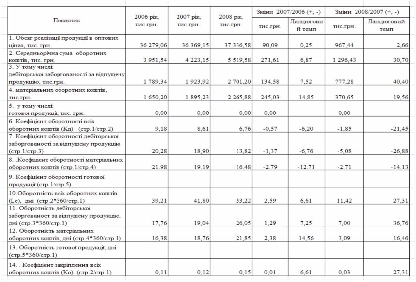 фінансового стану підприємства за результатами діяльності в 2006 -2008 роках