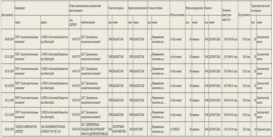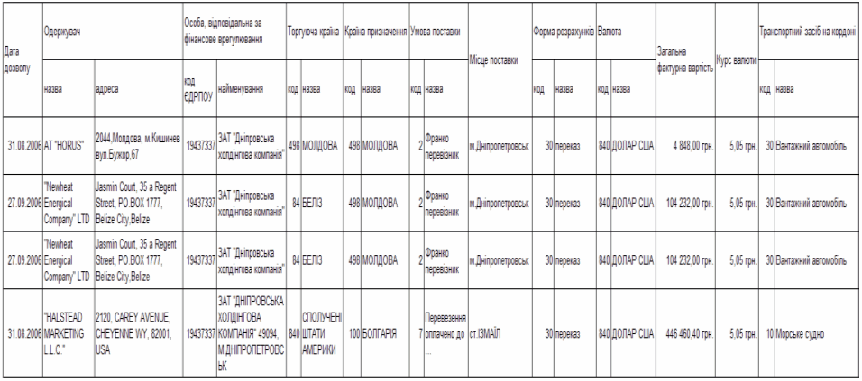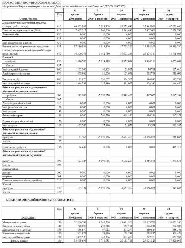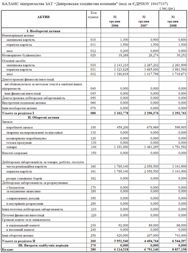 матеріалах ЗАТ «Дніпровська холдінгова компанія»)