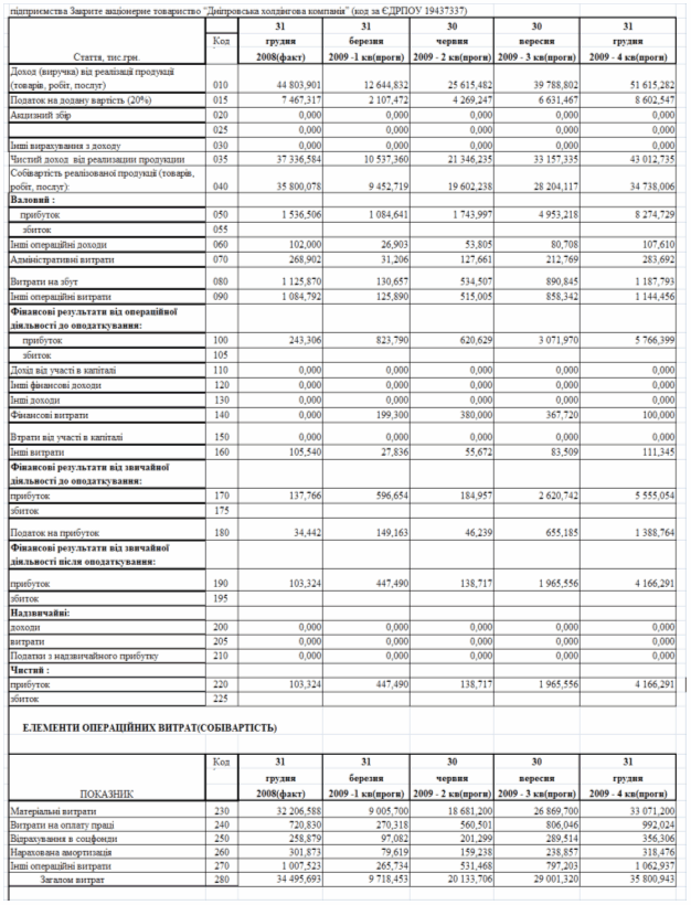 фінансового планування діяльності підприємства ЗАТ «Дніпровська холдінгова