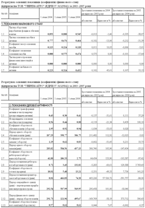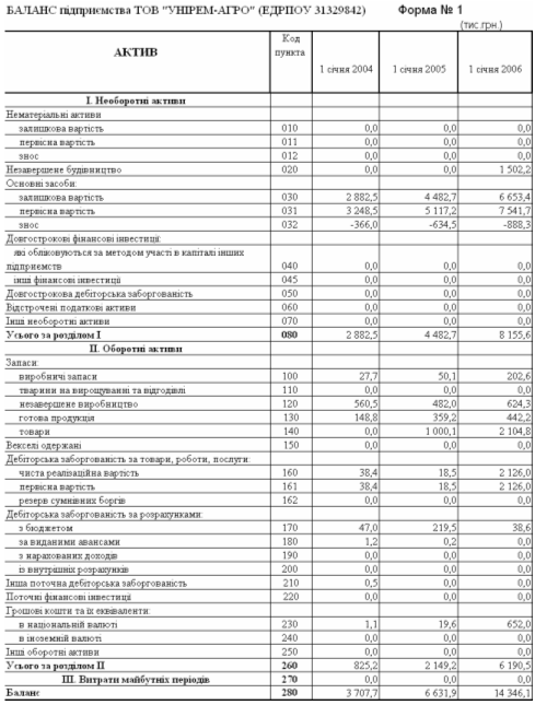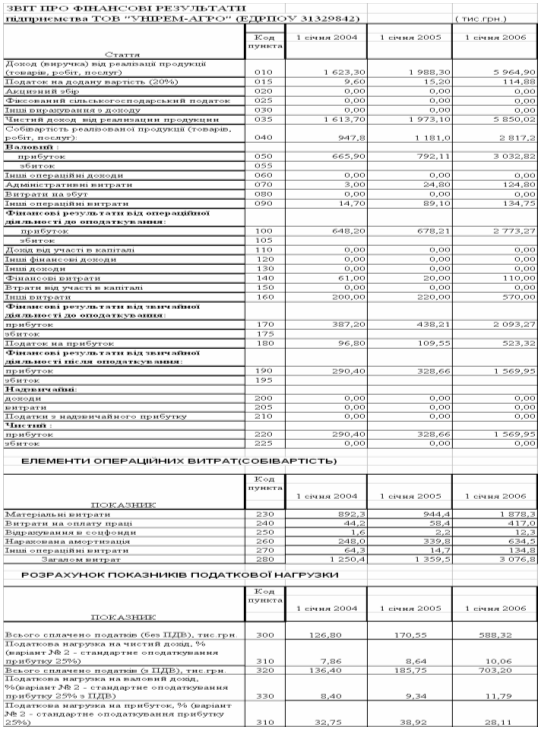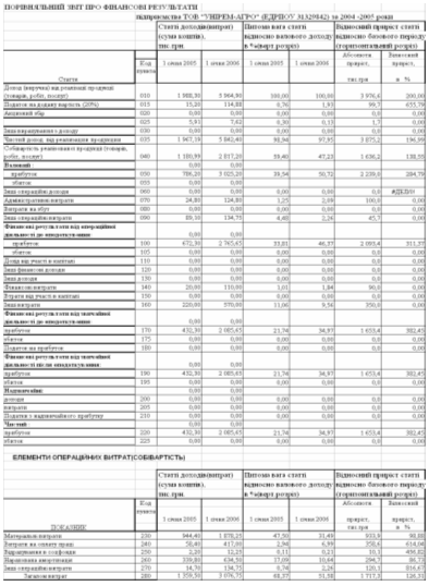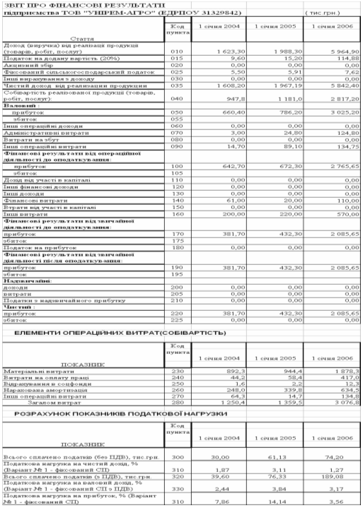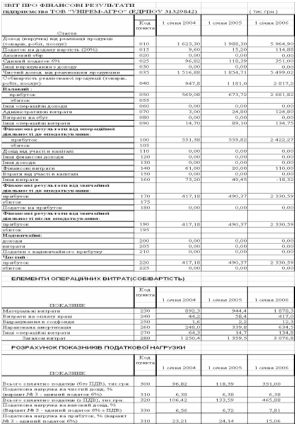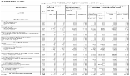 ТОВ “УНІРЕМАГРО” за 2004 – 2005 роки)