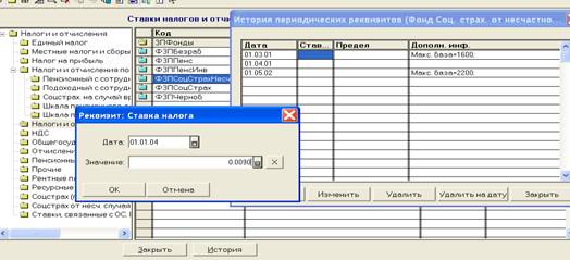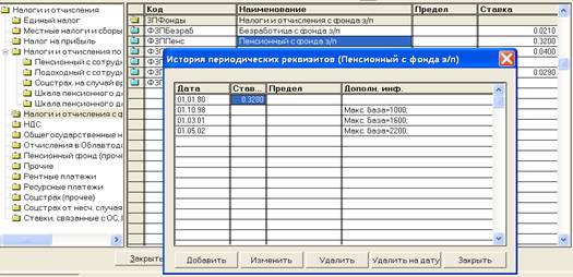 Рис. 2.2 Історія елементу довідника «Налоги и отчисления»