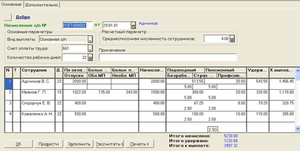 окремо і внести суму нарахувань до графи «По окладу». Утримання програма розрахує