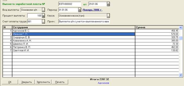 Рис. 7.1. Документ «Выплата заработной