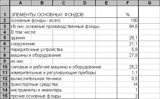 – это доля каждой группы основных средств в их общей стоимости. Структуру