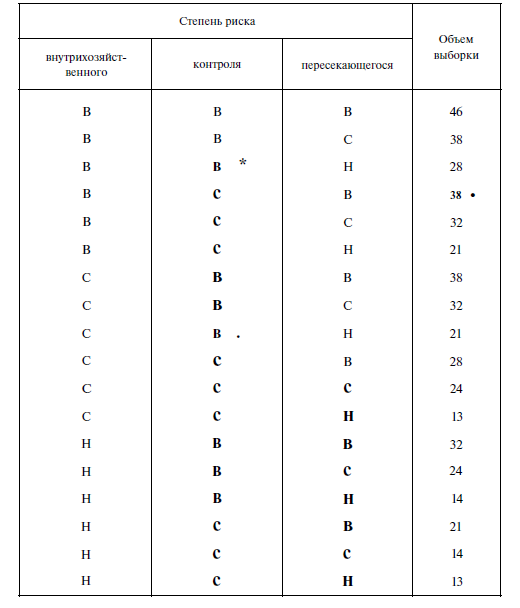 контроля и определенными значениями аудиторского риска и риска необнаружения.