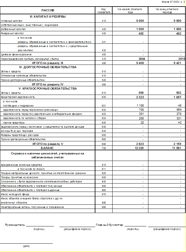 III "Капитал и резервы"; раздел IV "Долгосрочные