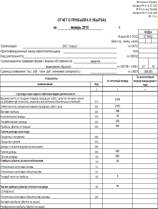 деятельности организации за отчетный период. В Отчете о прибылях и убытках