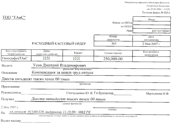 5. Документальное оформление кассовых операций