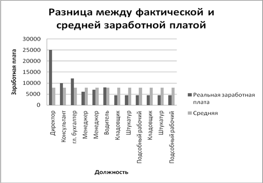 фактическую и среднюю заработную плату работников организации, можно увидеть,