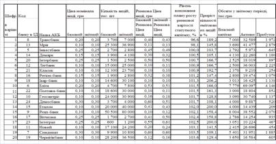 дійсної курсової роботи є показники ринкової вартості акцій комерційних