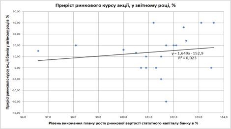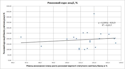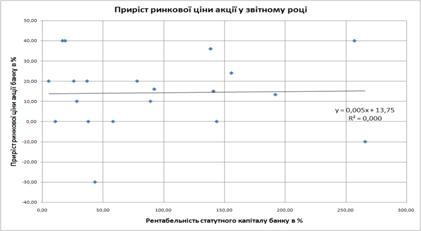 кореляційної залежності між рентабельністю статутного капіталу та ринковим