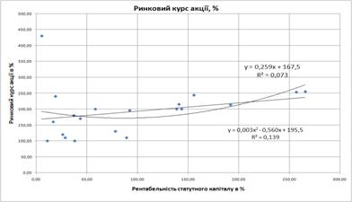 рядів ринкового курсу акцій та рентабельності статутного капіталу