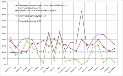 групування акціонерних банків за рівнем виконання плану росту курсу акції