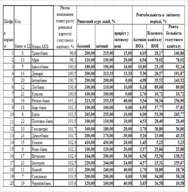 діяльності акціонерних банків” (на прикладі вибірки банків України)