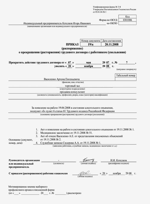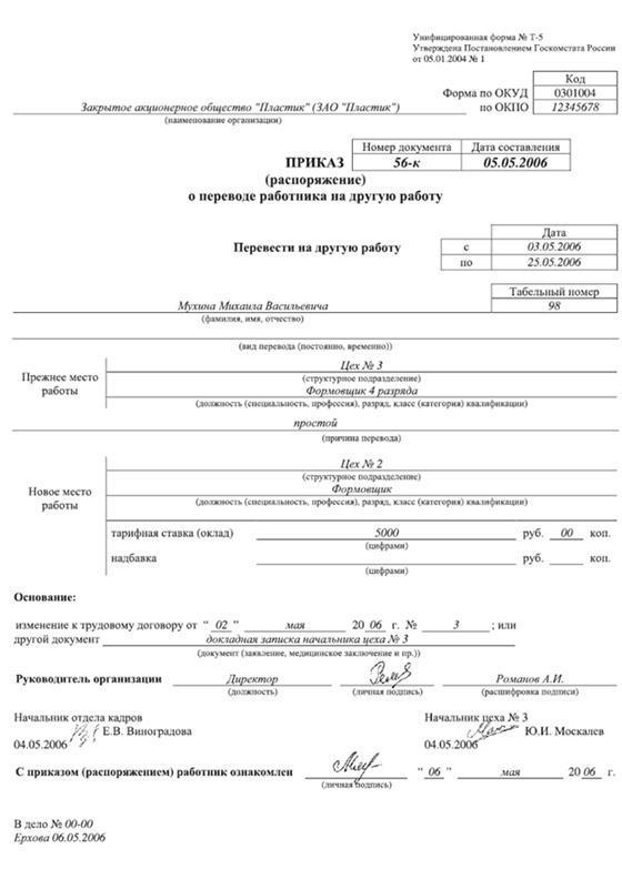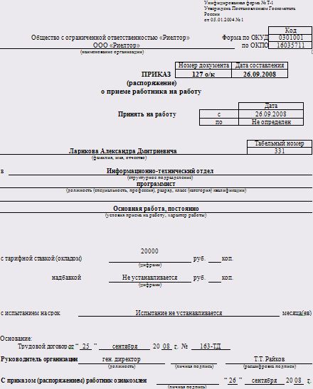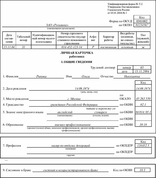 документальное оформление учета личного состава и использования рабочего