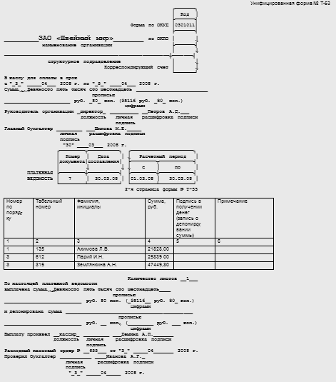 учета расчетов по оплате труда