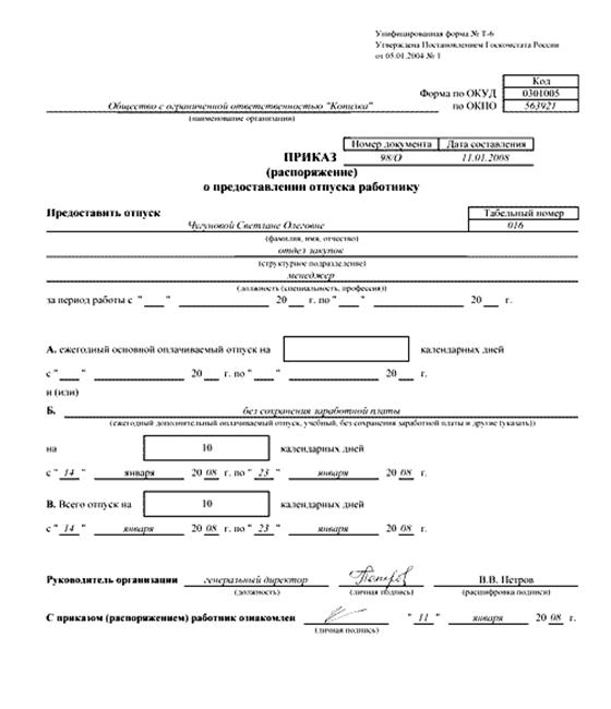 очередных, дополнительных и учетных отпусков.